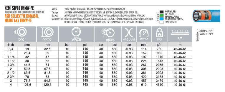 KEMI SD 10 UHMW PE Kimya Hortumu