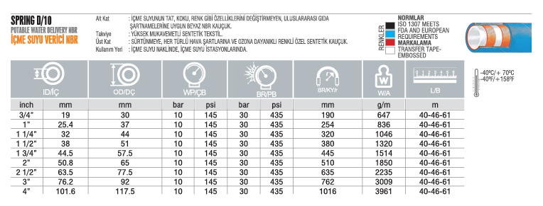 Ana SayfaCömertler HidrolikHortum ÇeşitleriGıda HortumlarıSPRING D 10 İçme Suyu Verici NBR Gıda Hortumu
