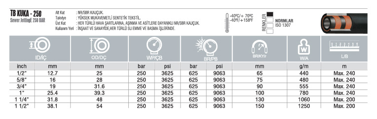 | Üst Kat | : | HER TÜRLÜ HAVA ŞARTLARINA,AŞINMA VE ASİTLERE DAYANIKLI NR/SBR KAUÇUK. |